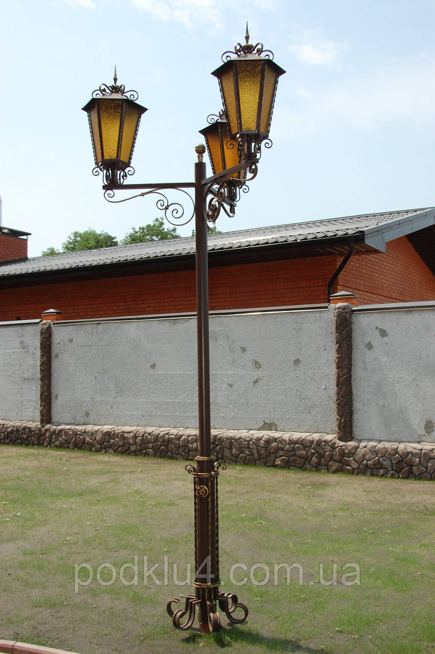 Кований ліхтар у сад під три лампи